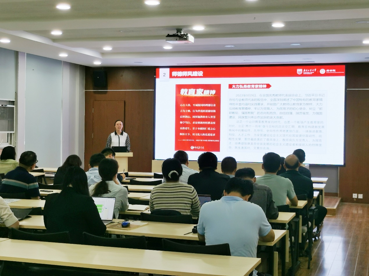 为深入贯彻新时代教育发展要求,进一步提升教师队伍的专业素养与创新能力,9月25日下午,我院在尚德楼A1报告厅召开教师教育教学能力提升暨安全工作会议。会议邀请学校科学研究院自然科学处副处长王宇翔作专题报告。学院全体教职工参加会议,会议由院长李学明主持。