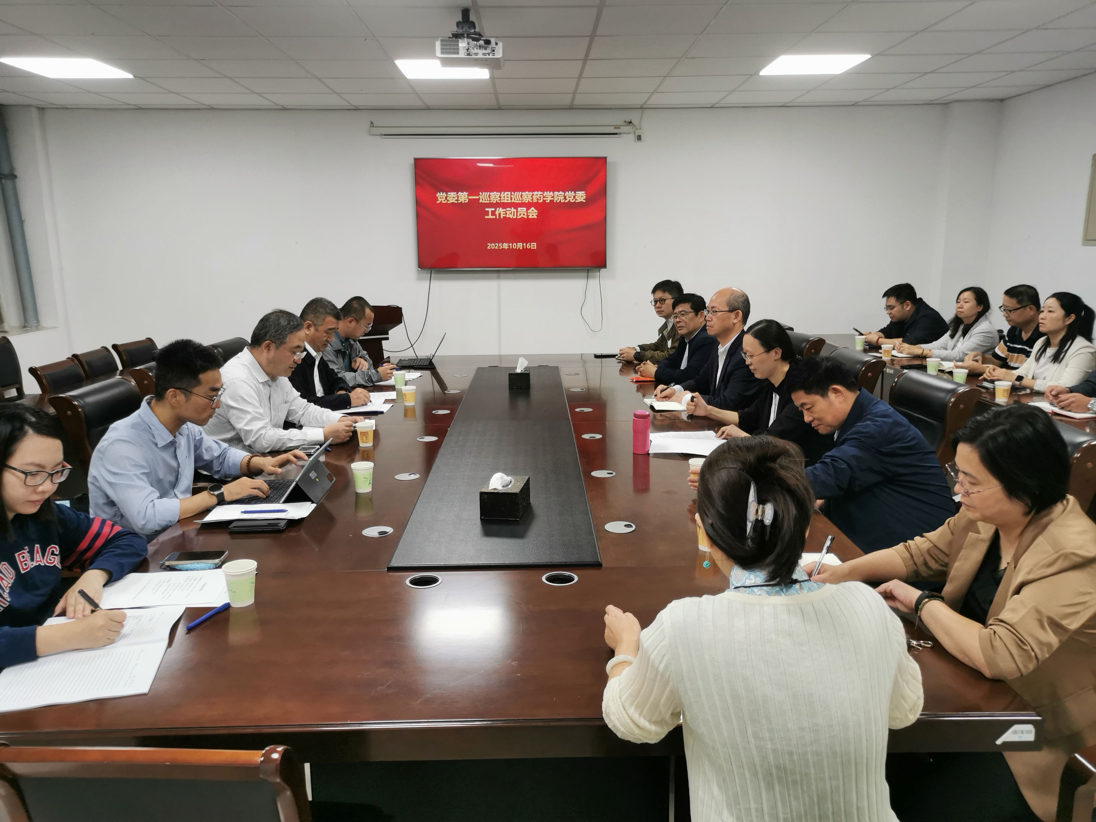 根据学校巡察工作安排,10月16日上午,校党委第一巡察组进驻药学院党委,在尚德楼C2-209召开巡察工作动员会。校党委常委、副校长、第一巡察组组长凌祥出席会议,第一巡察组副组长高树军及巡察组其他成员,药学院领导班子成员、教工党支部书记、教研室负责人、教授代表、教师代表、党外人士代表等参加会议。药学院党委书记王飞主持会议。
