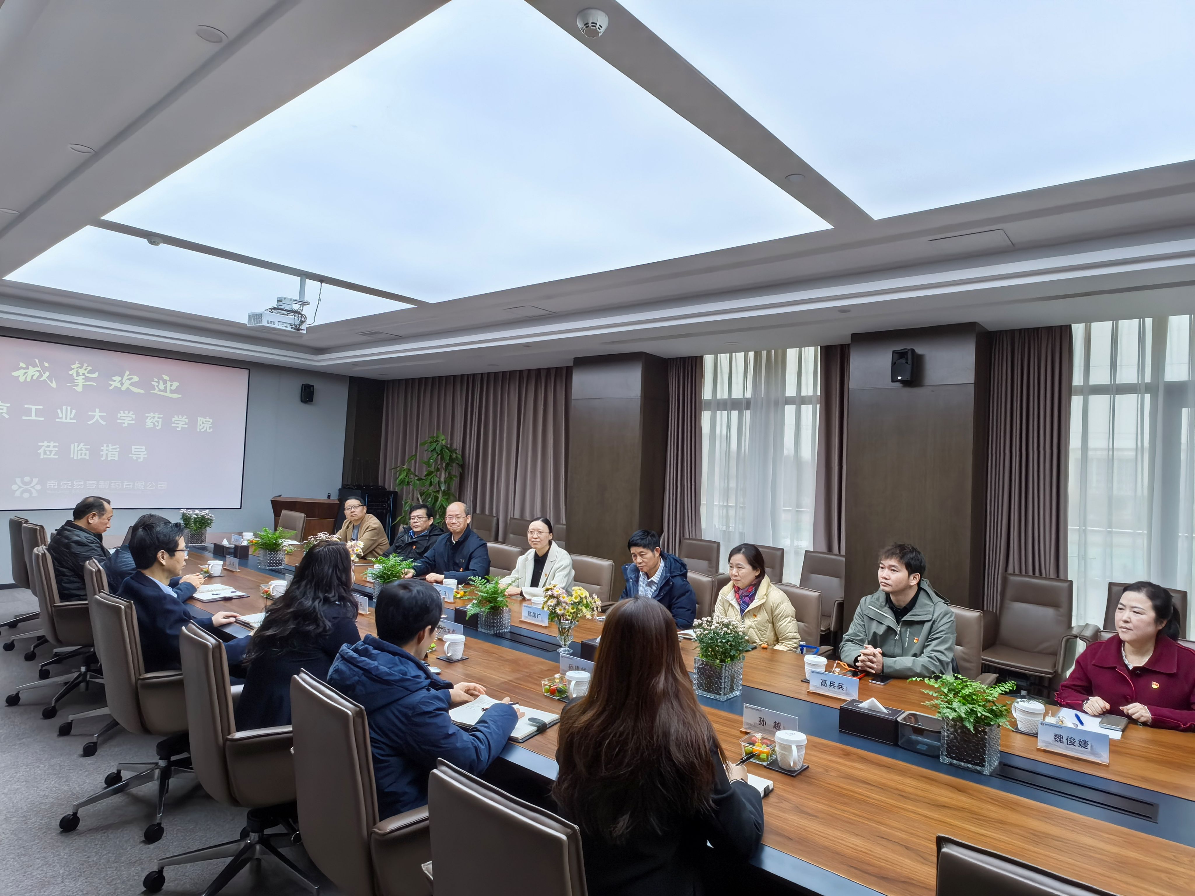 为深化产教融合,促进教育链、人才链与产业链的有机衔接,12月23日上午,药学院赴南京易亨制药有限公司开展调研交流。学院领导班子成员及相关教研室负责人参加座谈会,会议由易亨制药副总经理陈女贞主持。